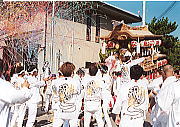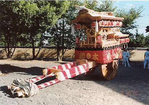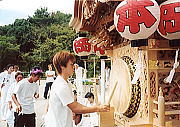 平成12年9月10日、平成10年に大屋根が前に落ちる事故がありました。それを克服すべく、9月3日に完成し平成12年9月10日 船岡神社にて盛大に入魂式が執り行われました。